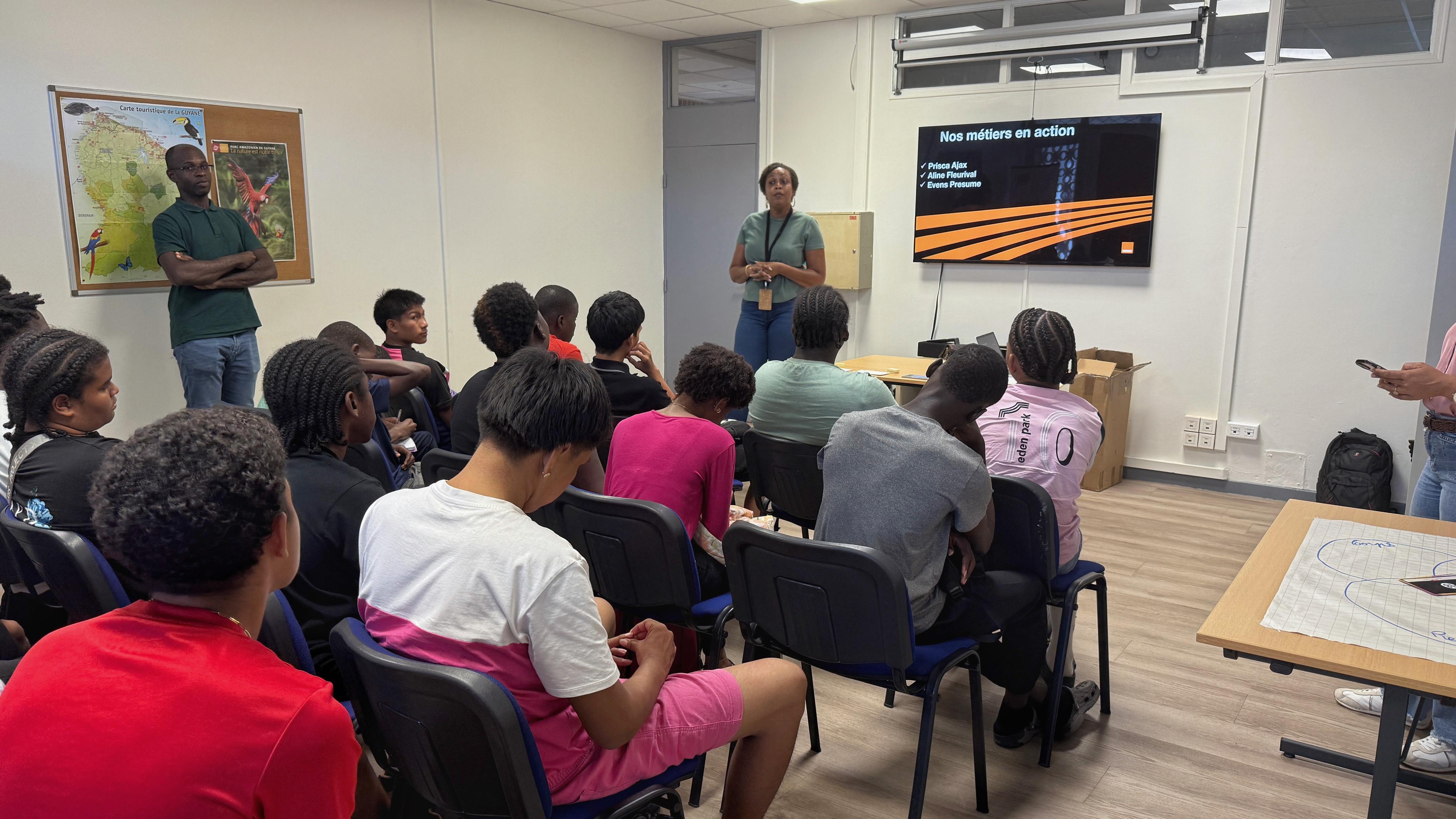Les élèves ont commencé leur parcours chez Orange Guyane, où ils ont découvert la complexité des infrastructures qui permettent aux usagers d’être connectés au quotidien. Fibre optique, réseau mobile, centre technique : l’entreprise leur a présenté les métiers liés aux télécommunications, mais aussi les défis de l’innovation numérique dans un territoire vaste comme la Guyane.