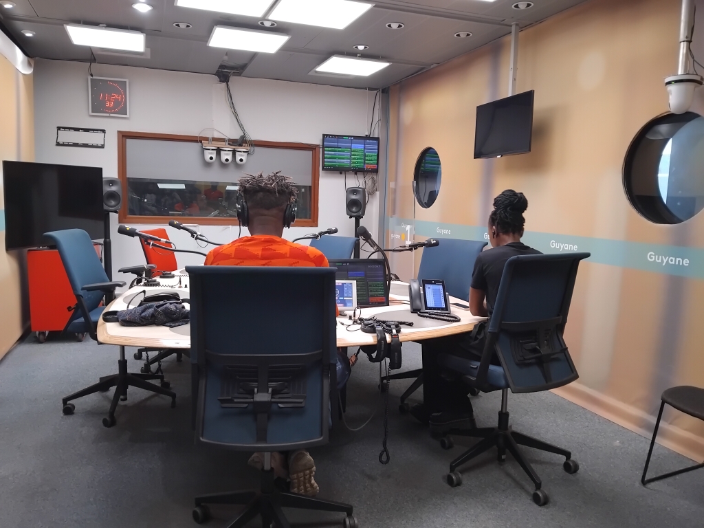 Dans le cadre de la Semaine de la Presse et des Médias à l’ Ecole, ce vendredi 27 mars 2026, les élèves de la classe de Seconde Bac Pro MTNE 3 (Métiers des Transitions Numérique et Energétique) accompagnés de leur professeur de Lettres M. NIEDERKORN et leur professeure-documentaliste, Mme ANTOINE, ont assisté à une visite commentée de l’ensemble des installations de la station Guyane la Première, à Rémire-Montjoly.